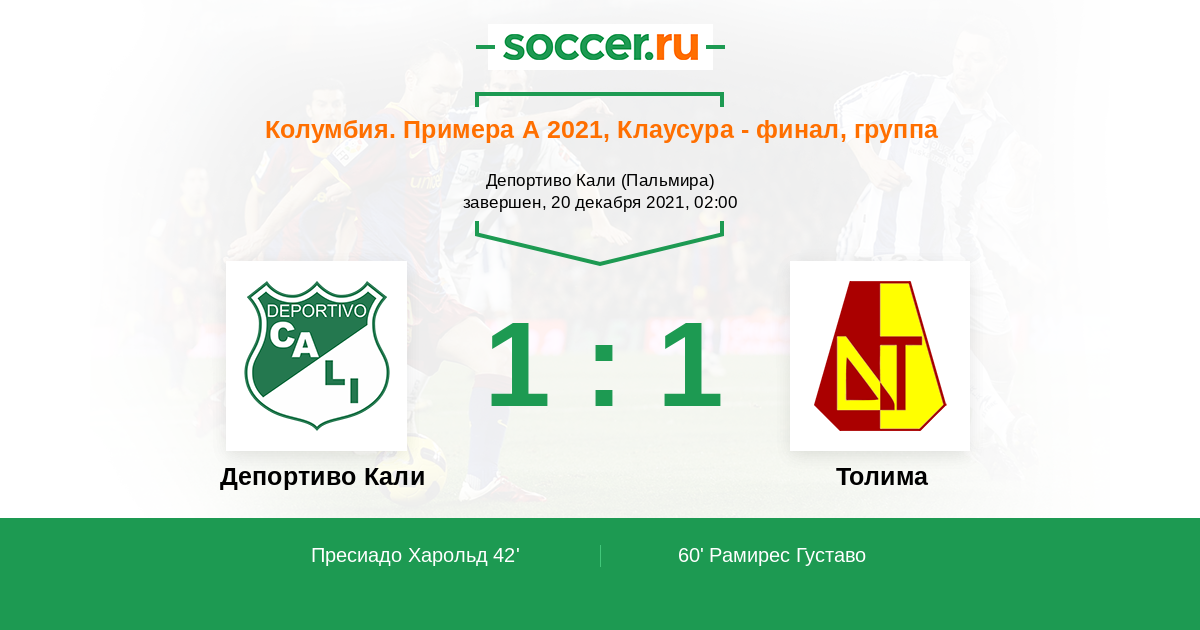 Протокол матча Депортиво Кали против Толима