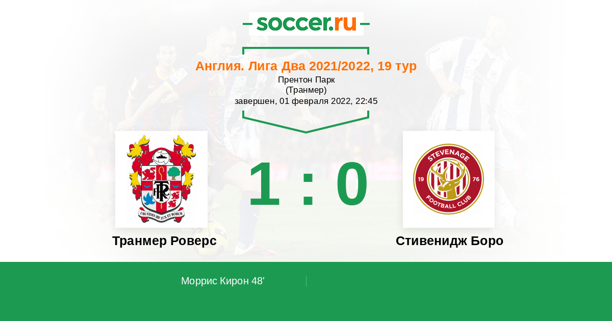 Протокол матча Транмер Роверс против Стивенидж Боро
