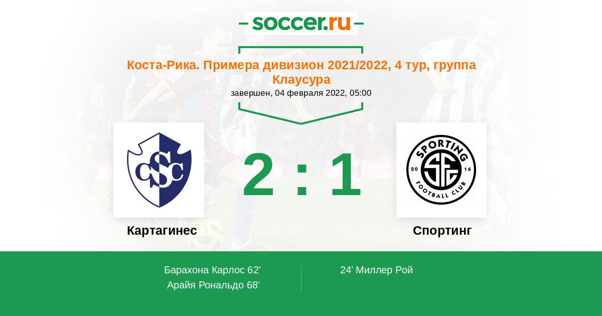 Протокол матча Картахинес против Спортинг Сан-Хосе