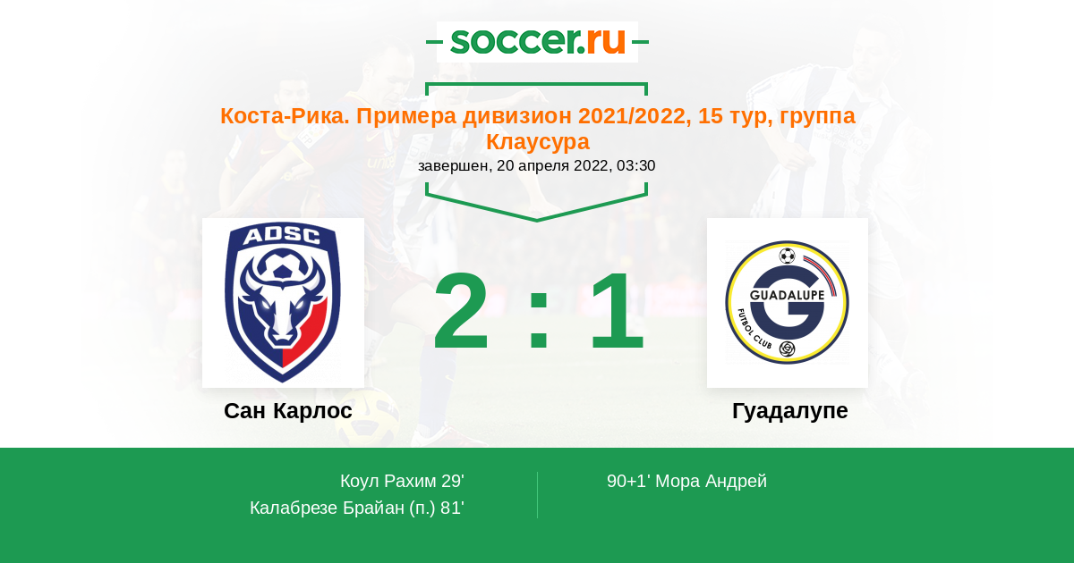 Протокол матча Сан Карлос против Гуадалупе
