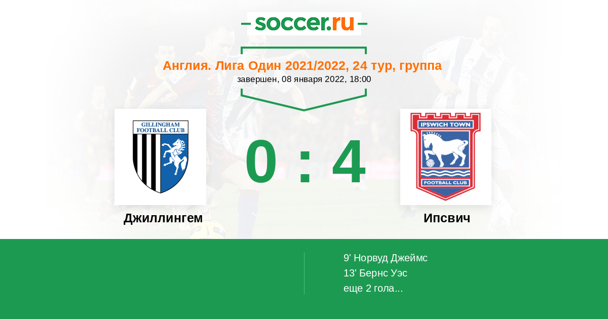Протокол матча Джиллингем против Ипсвич