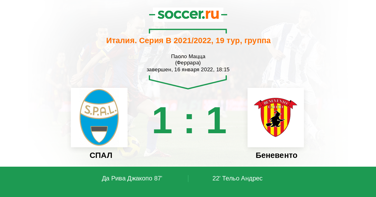 22' (0:1) Тельо Андрес (8) (Акампора Дженнаро (4))