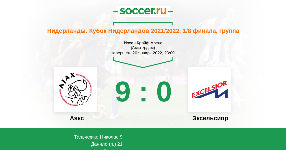 Протокол матча Аякс против Эксельсиор