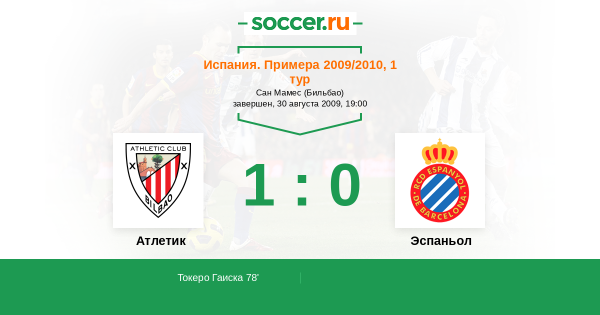 Протокол матча Атлетик против Эспаньол
