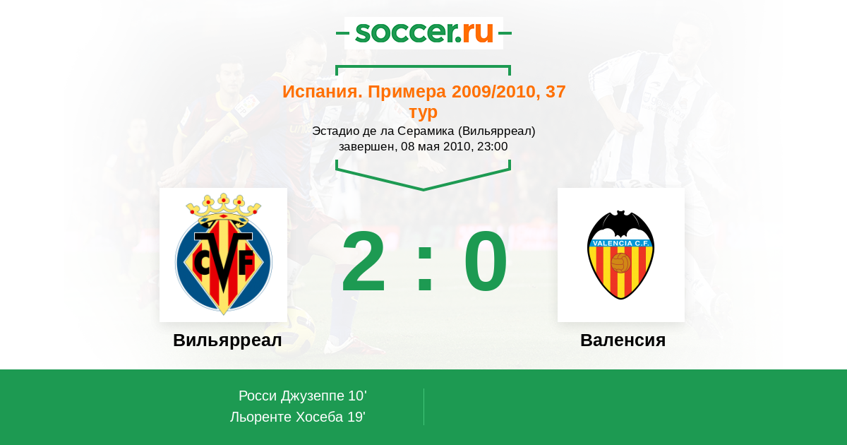 Протокол матча Вильярреал против Валенсия