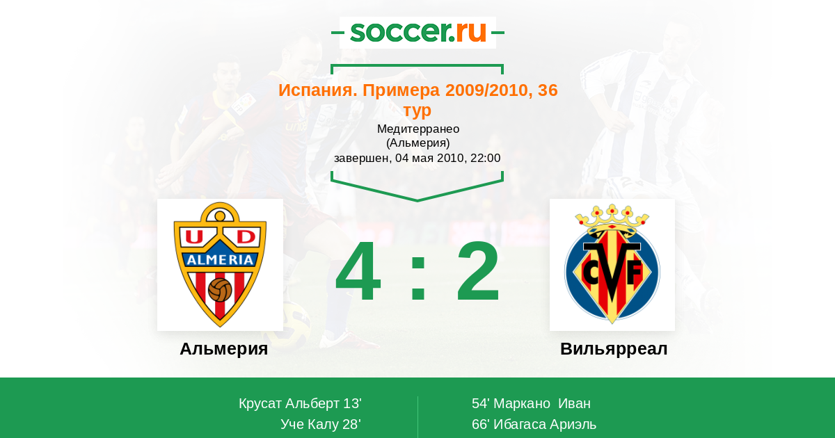 Протокол матча Альмерия против Вильярреал