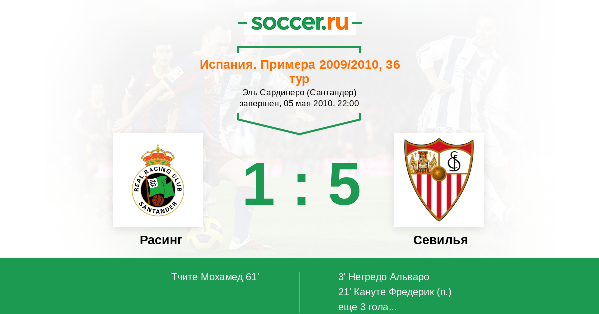 Протокол матча Расинг против Севилья