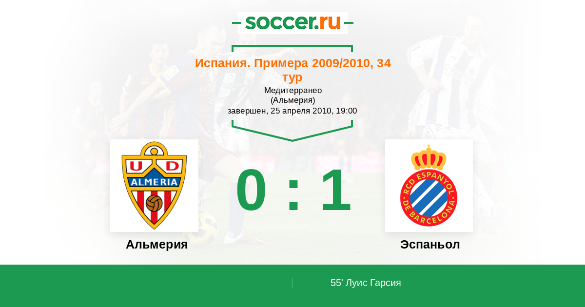 Протокол матча Альмерия против Эспаньол