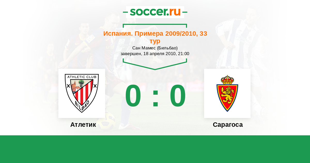 Протокол матча Атлетик против Сарагоса