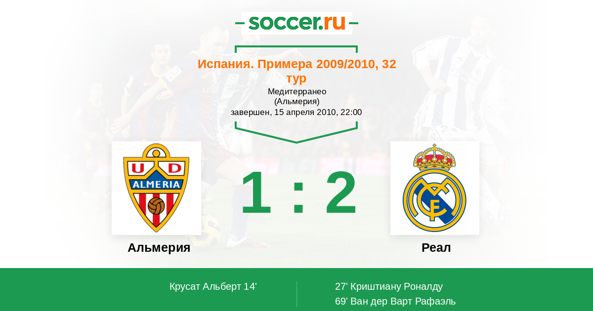 Протокол матча Альмерия против Реал