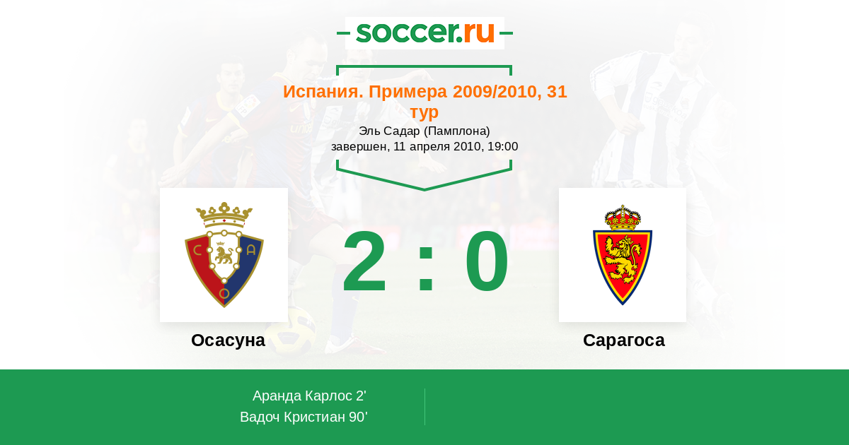 2' (1:0) Аранда Карлос (20) (Серхио (23))