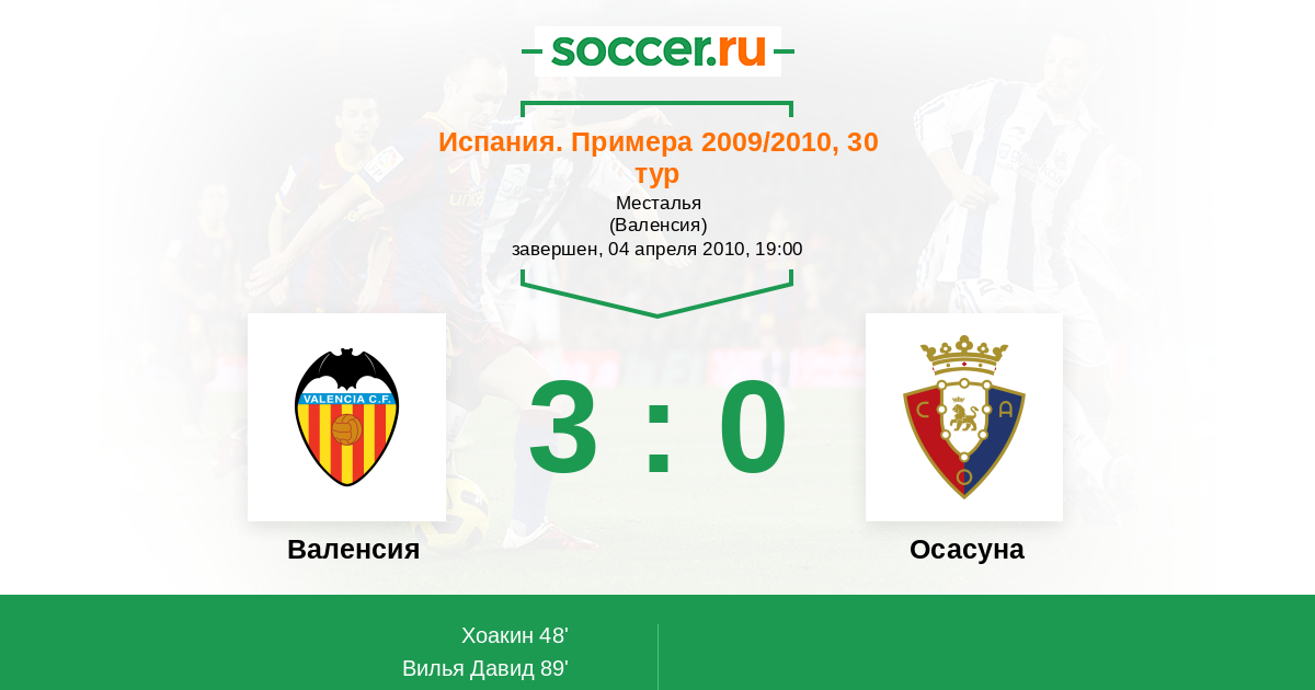 Протокол матча Валенсия против Осасуна