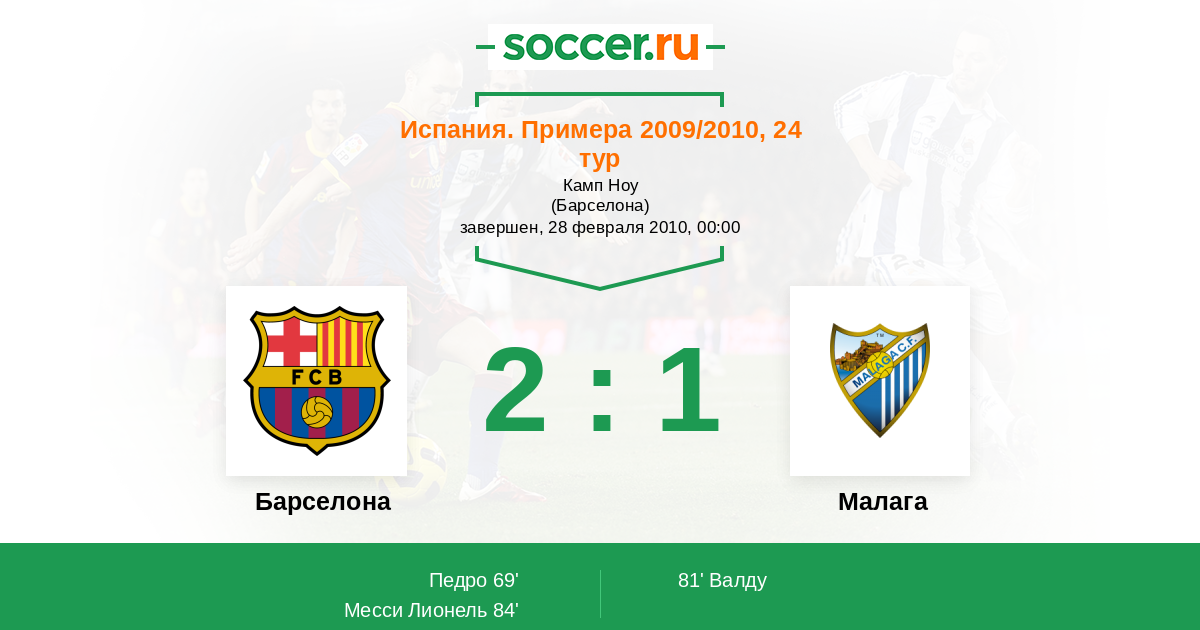 Протокол матча Барселона против Малага