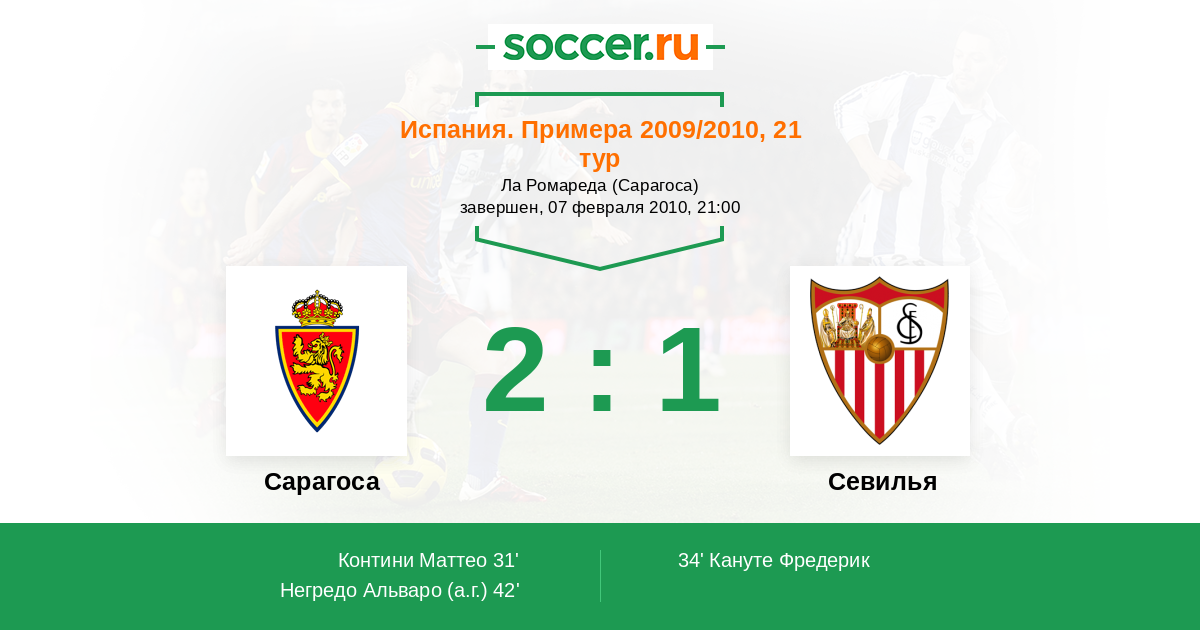 Протокол матча Сарагоса против Севилья