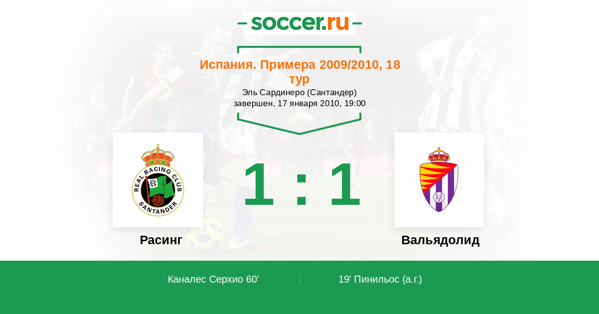 Протокол матча Расинг против Вальядолид