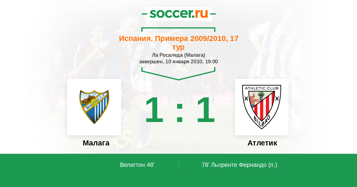 Протокол матча Малага против Атлетик