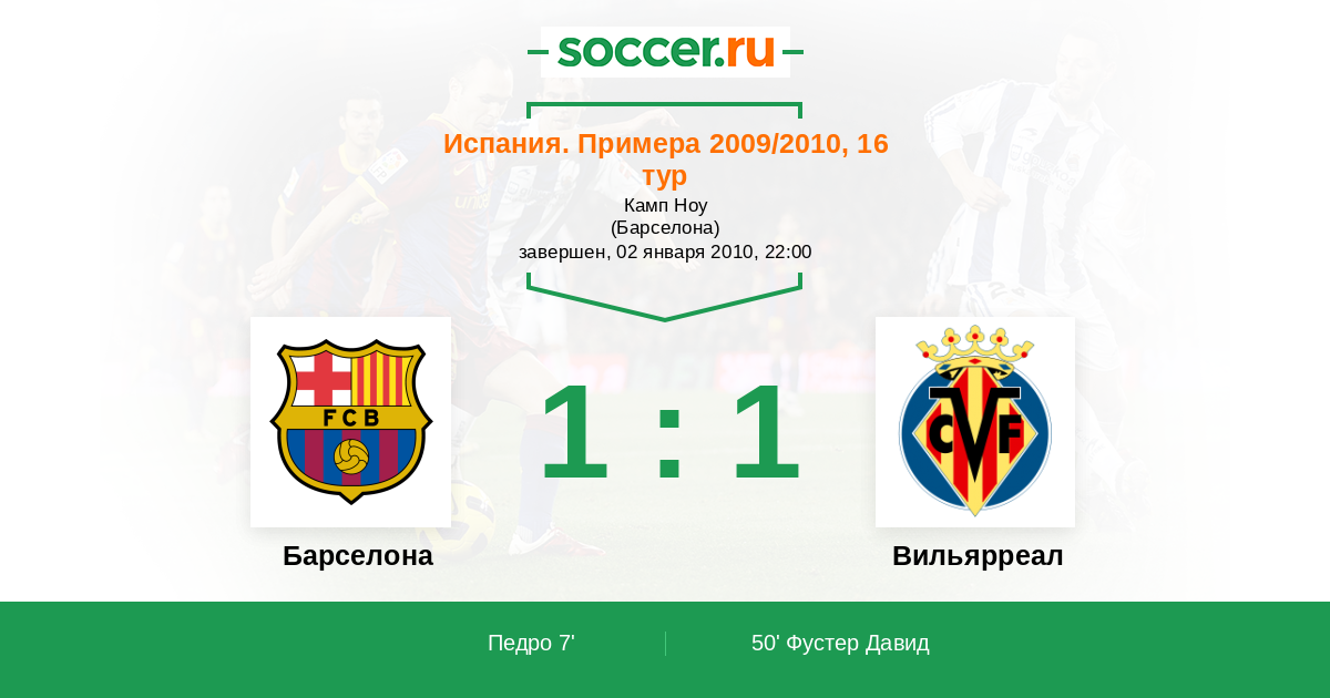 Протокол матча Барселона против Вильярреал