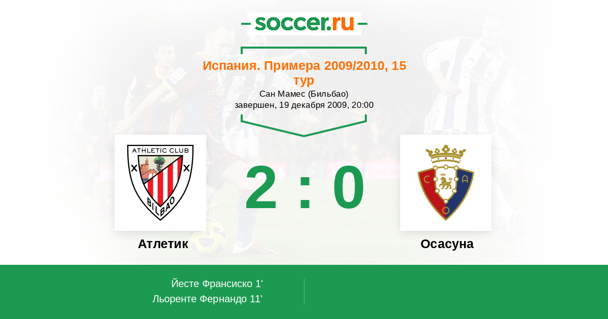 Протокол матча Атлетик против Осасуна