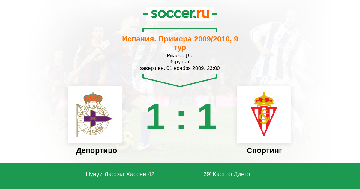 Протокол матча Депортиво против Спортинг