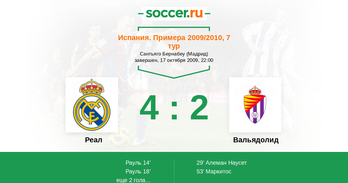 Протокол матча Реал против Вальядолид