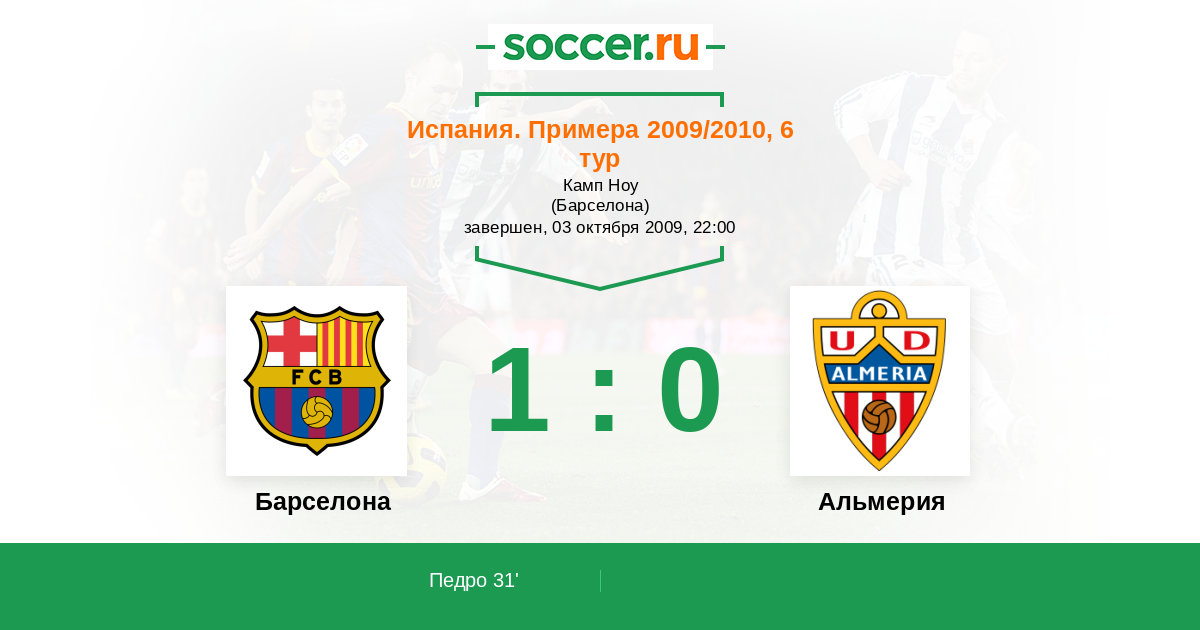 Протокол матча Барселона против Альмерия