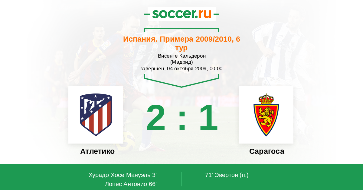Протокол матча Атлетико против Сарагоса