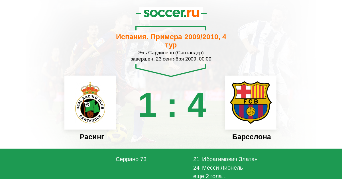 Протокол матча Расинг против Барселона