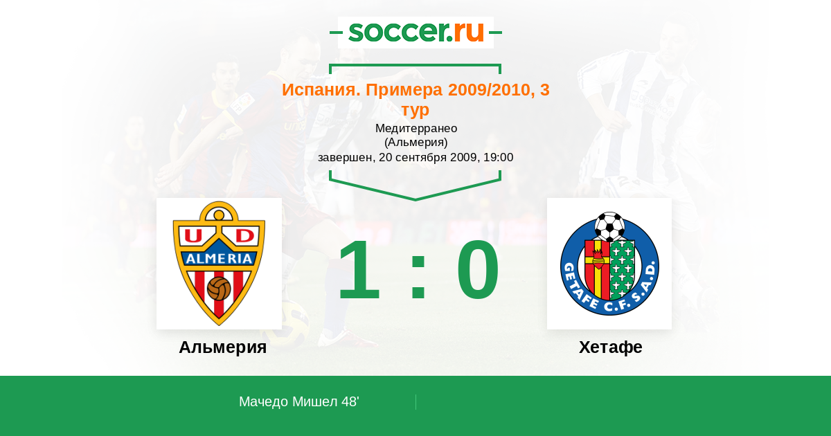Протокол матча Альмерия против Хетафе