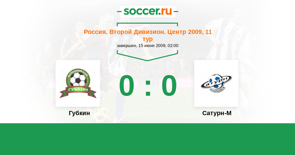 Россия. Вторая лига. Группа 3 14.09.2009 Сатурн-2 Логотип футбольный клуб Сатурн-2 (Раменское) 2:0 Логотип футбольный клуб Губкин Губкин