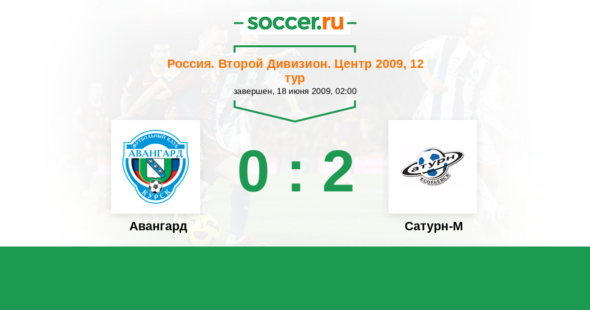 Россия. Вторая лига. Группа 3 17.09.2009 Сатурн-2 Логотип футбольный клуб Сатурн-2 (Раменское) 0:2 Логотип футбольный клуб Авангард (Курск) Авангард