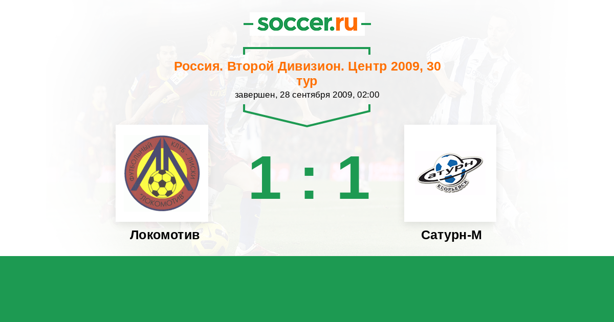 Россия. Вторая лига. Группа 3 28.06.2009 Сатурн-2 Логотип футбольный клуб Сатурн-2 (Раменское) 1:1 Логотип футбольный клуб Локомотив (Лиски) Локомотив
