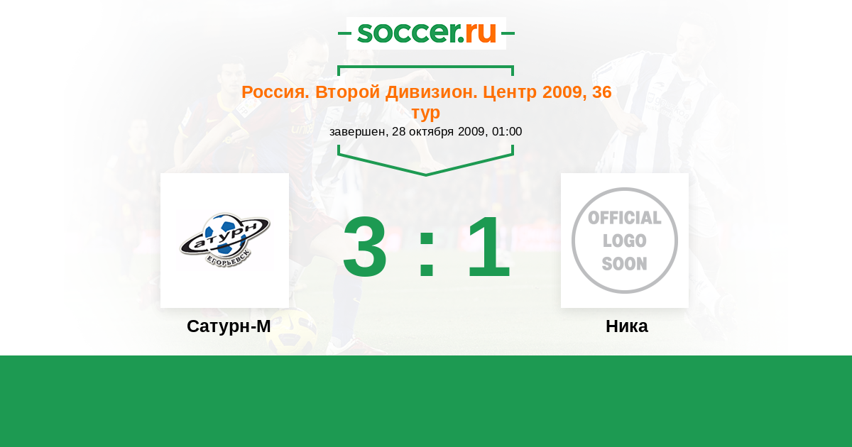 Россия. Вторая лига. Группа 3 22.04.2009 Ника Логотип футбольный клуб Ника (Москва) 1:1 Логотип футбольный клуб Сатурн-2 (Раменское) Сатурн-2
