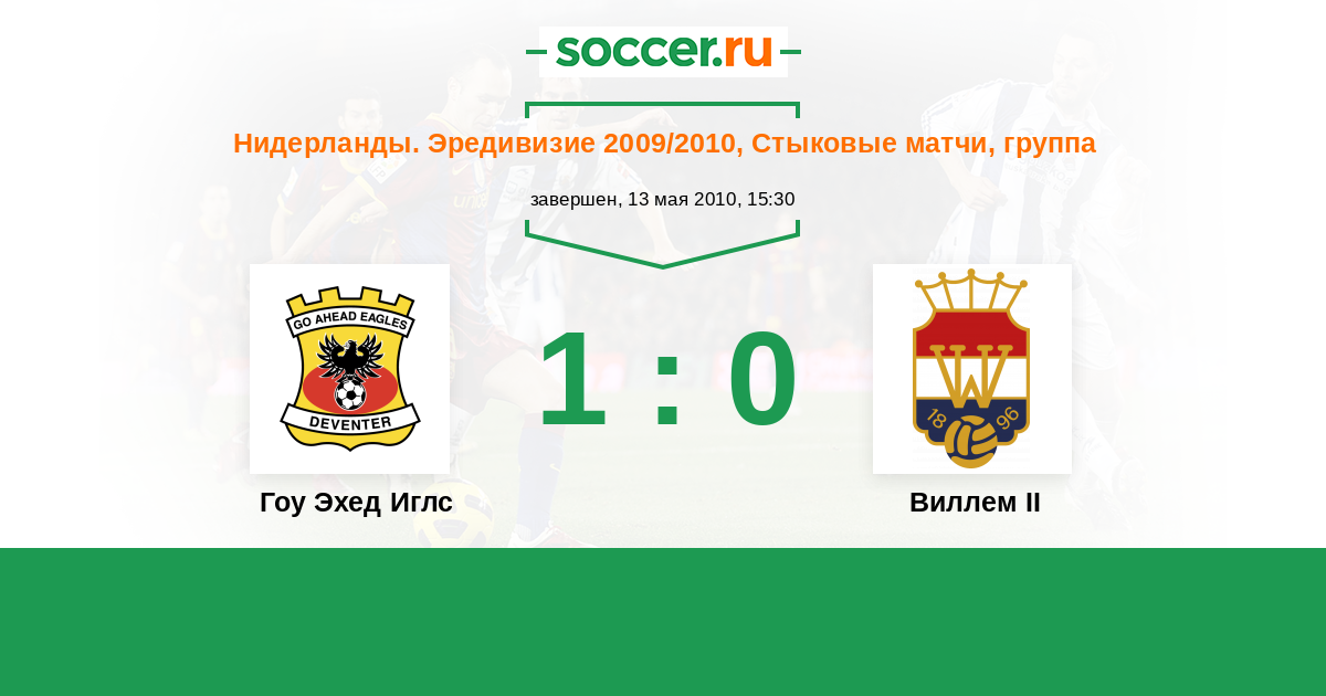 Нидерланды. Эредивизи 16.05.2010 Виллем II Логотип футбольный клуб Виллем II (Тилбург) 3:0 Логотип футбольный клуб Гоу Эхед Иглс (Девентер) Гоу Эхед Иглс