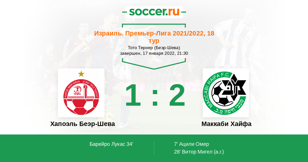 Протокол матча Хапоэль Беэр-Шева против Маккаби Хайфа