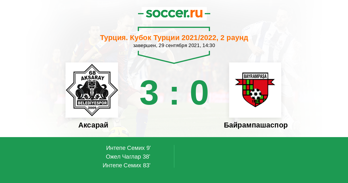 Протокол матча Аксарай против Байрампашаспор