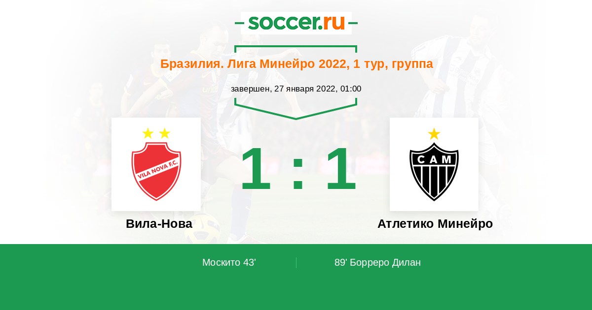 Протокол матча Вила-Нова против Атлетико Минейро
