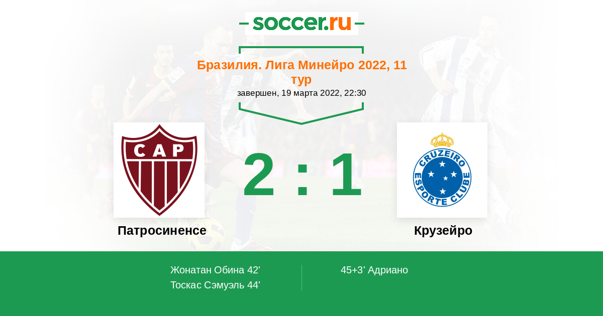 42' (1:0) Жонатан Обина (19) (Марсио Жонатан (7))
