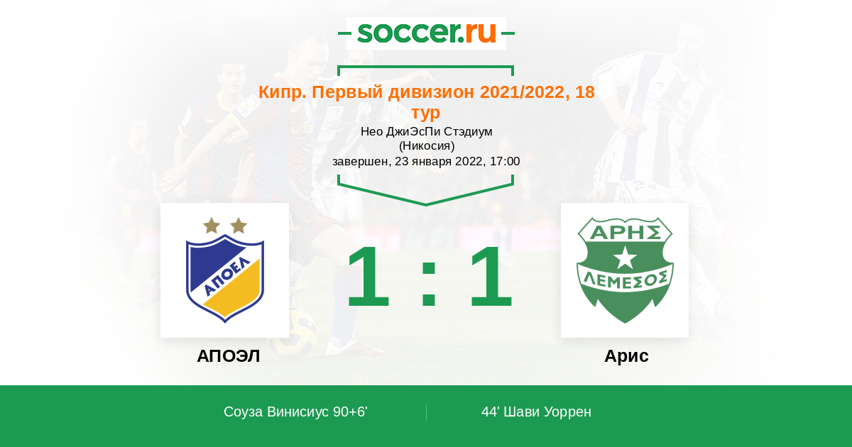 Протокол матча АПОЭЛ против Арис