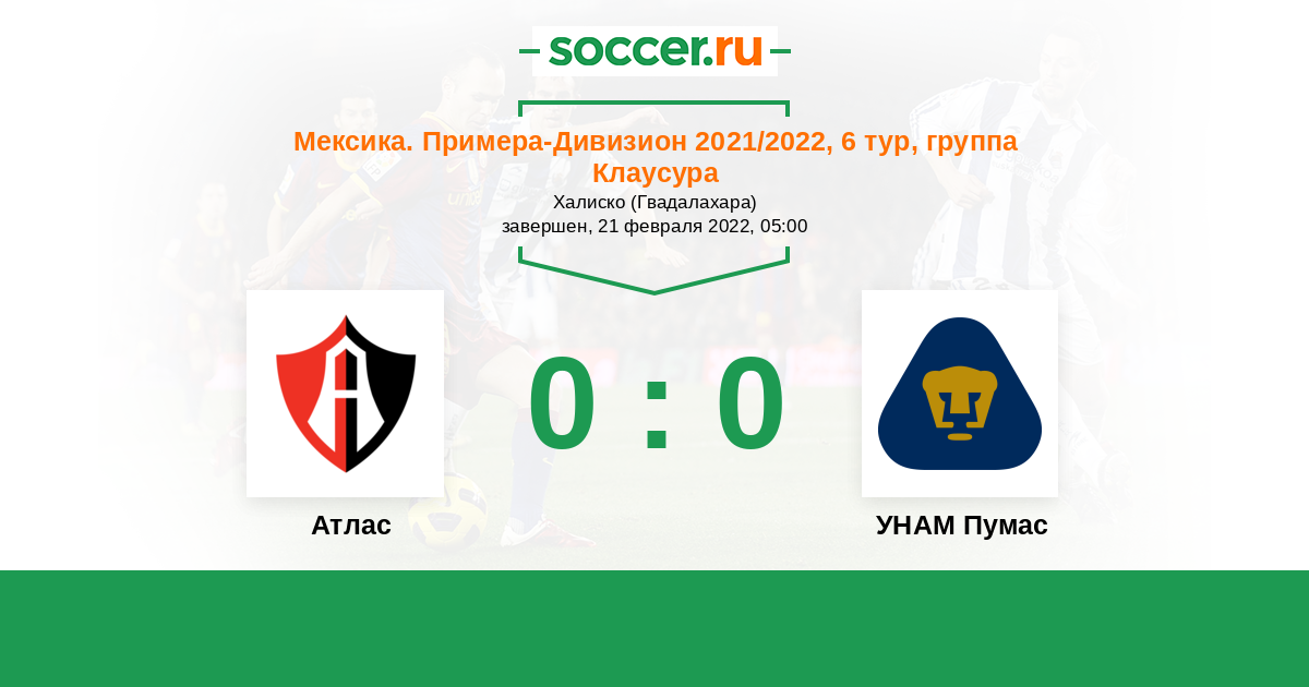 Протокол матча Атлас против УНАМ Пумас