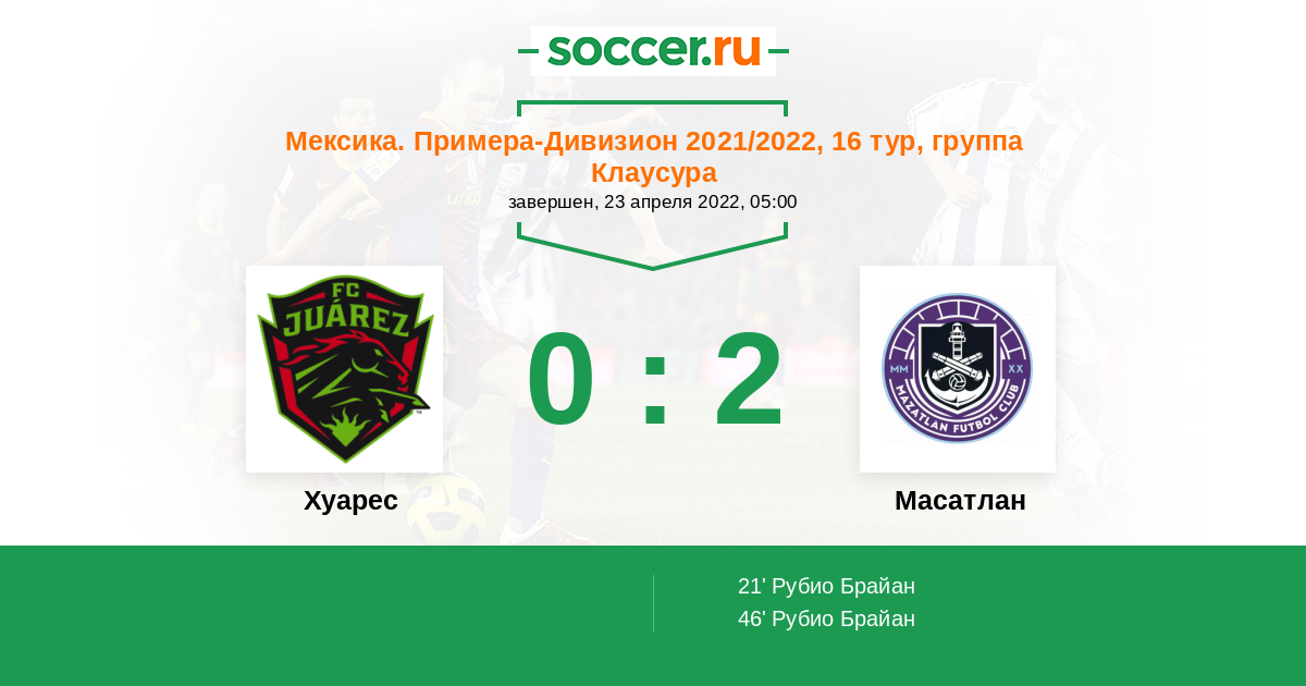 21' (0:1) Рубио Брайан (23) (Варгас Карлос (5))