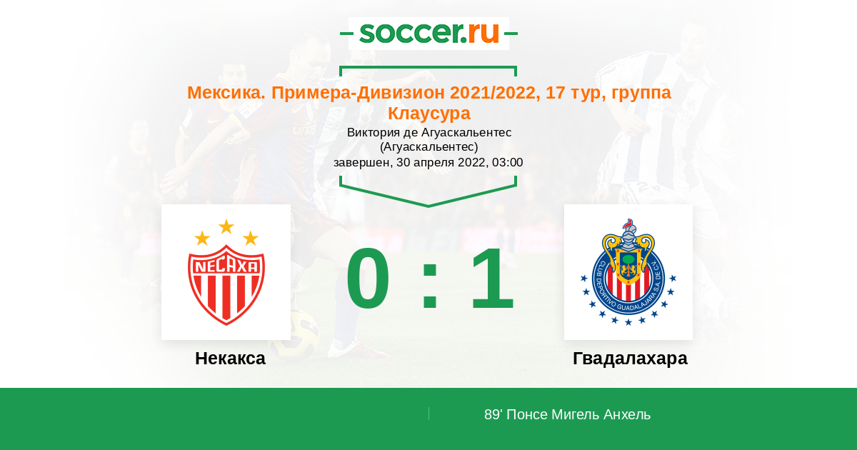 Протокол матча Некакса против Гвадалахара