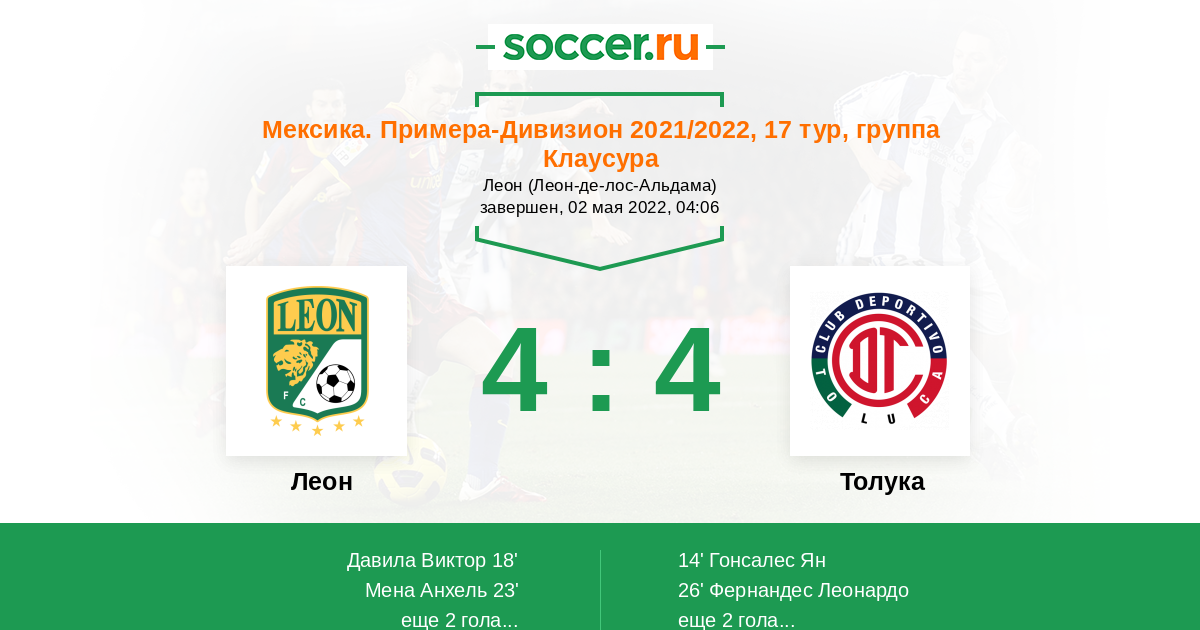 Протокол матча Леон против Толука