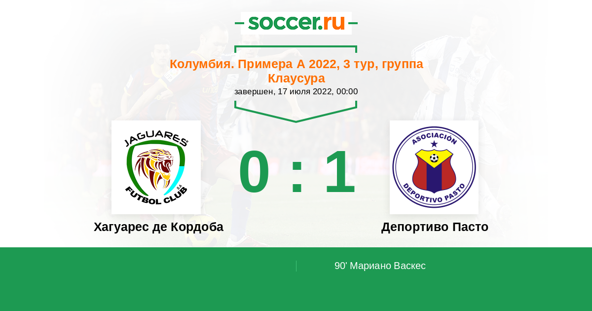 Протокол матча Хагуарес де Кордоба против Депортиво Пасто