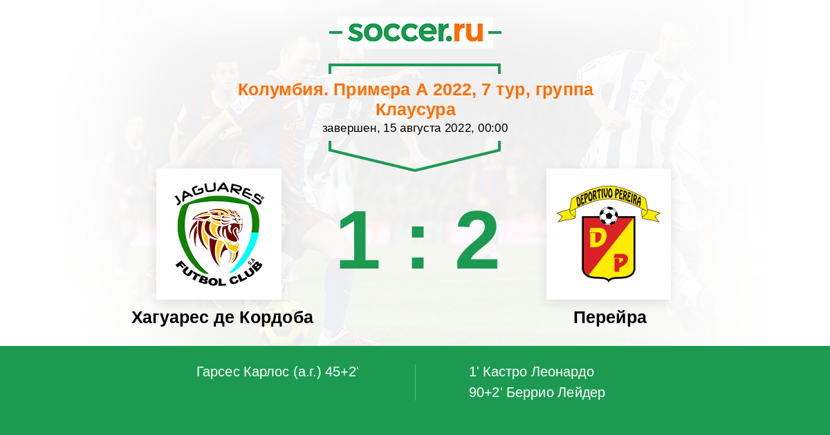45+2' (1:1) Автогол Гарсес Карлос (4)