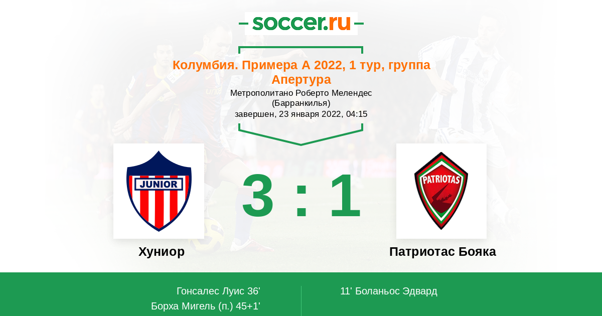 36' (1:1) Гонсалес Луис (10) (Пачеко Валмер (21))