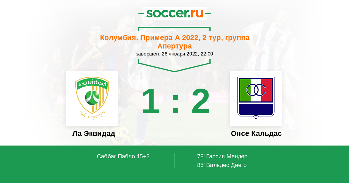 Протокол матча Ла Эквидад против Онсе Кальдас