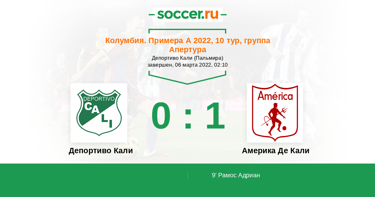 9' (0:1) Рамос Адриан (20) (Москейра Элвис (22))