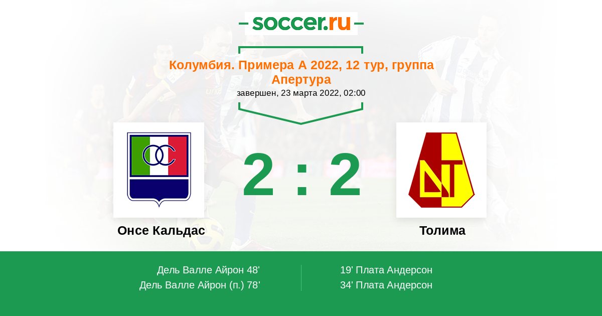 34' (0:2) Плата Андерсон (11) (Ангуло Хуан (13))