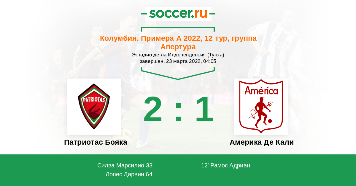 Протокол матча Патриотас Бояка против Америка Де Кали