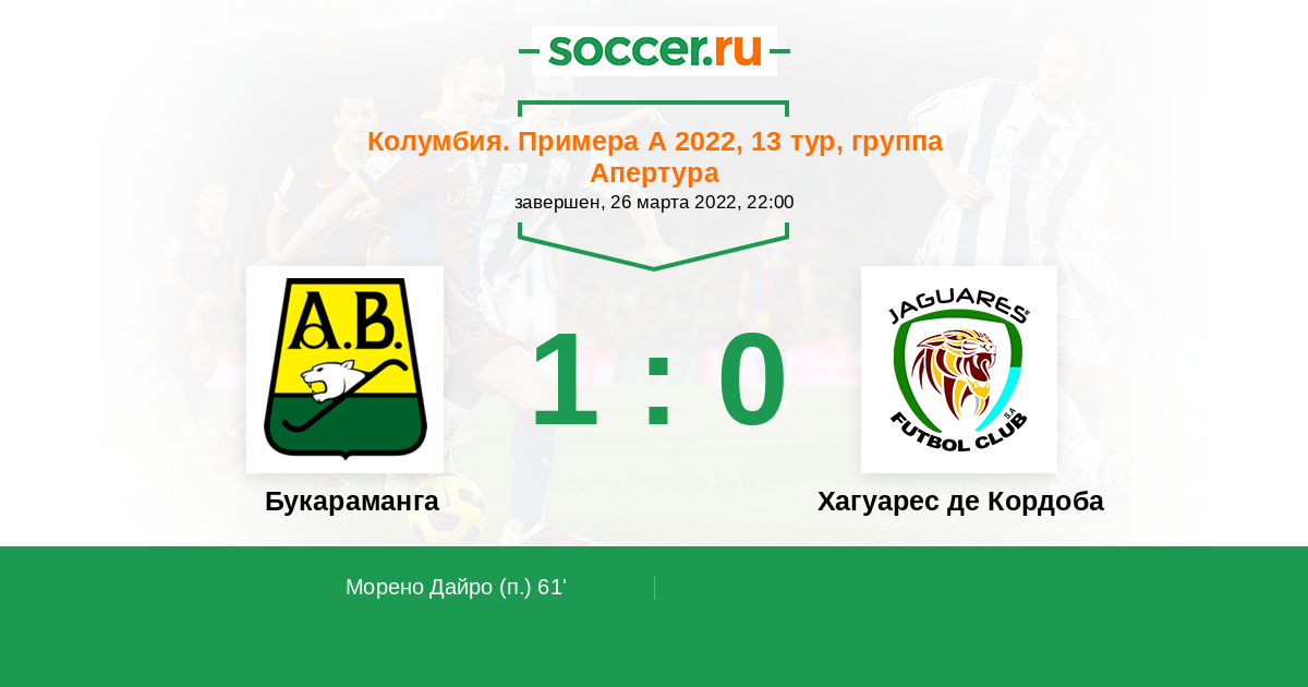 Протокол матча Букараманга против Хагуарес де Кордоба